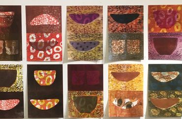 Nancy Exarhu is a Saint Louis based artist who creates paintings, prints, textiles and ceramics, owner of Studio Escargot, Inc
